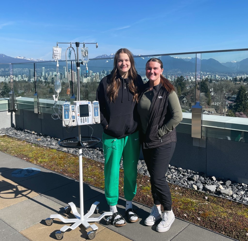 The day after the Point Roberts trip was a treatment day, and Nadia came along. The weather was beautiful, and now we know why they put wheels on IV poles. Oncology is on the eighth floor at Children’s Hospital and has a rooftop garden with a great view of the city.